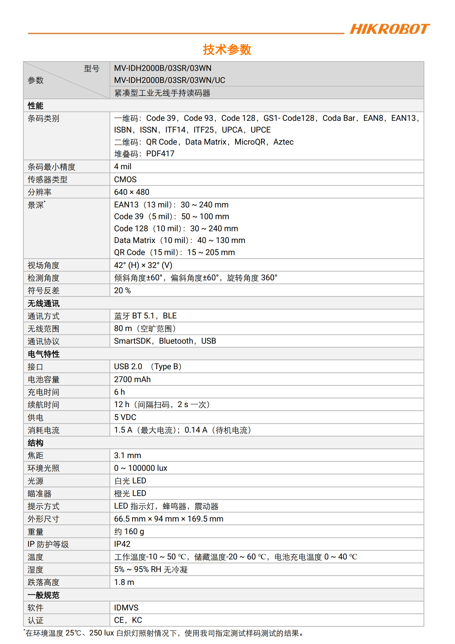 0.3MP 像素,标准距离,单手持读码器:MV-IDH2000B/03SR/03WN