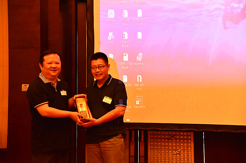 除了感谢各经销商的支持与信赖,亚万达资1999年成立至今,同样离不开公司各位同仁的共同努力与无私奉献。亚万达徐总特别为入职八年的张秀平张经理颁发了优秀员工奖,为马伟马经理颁发了开拓功勋奖。