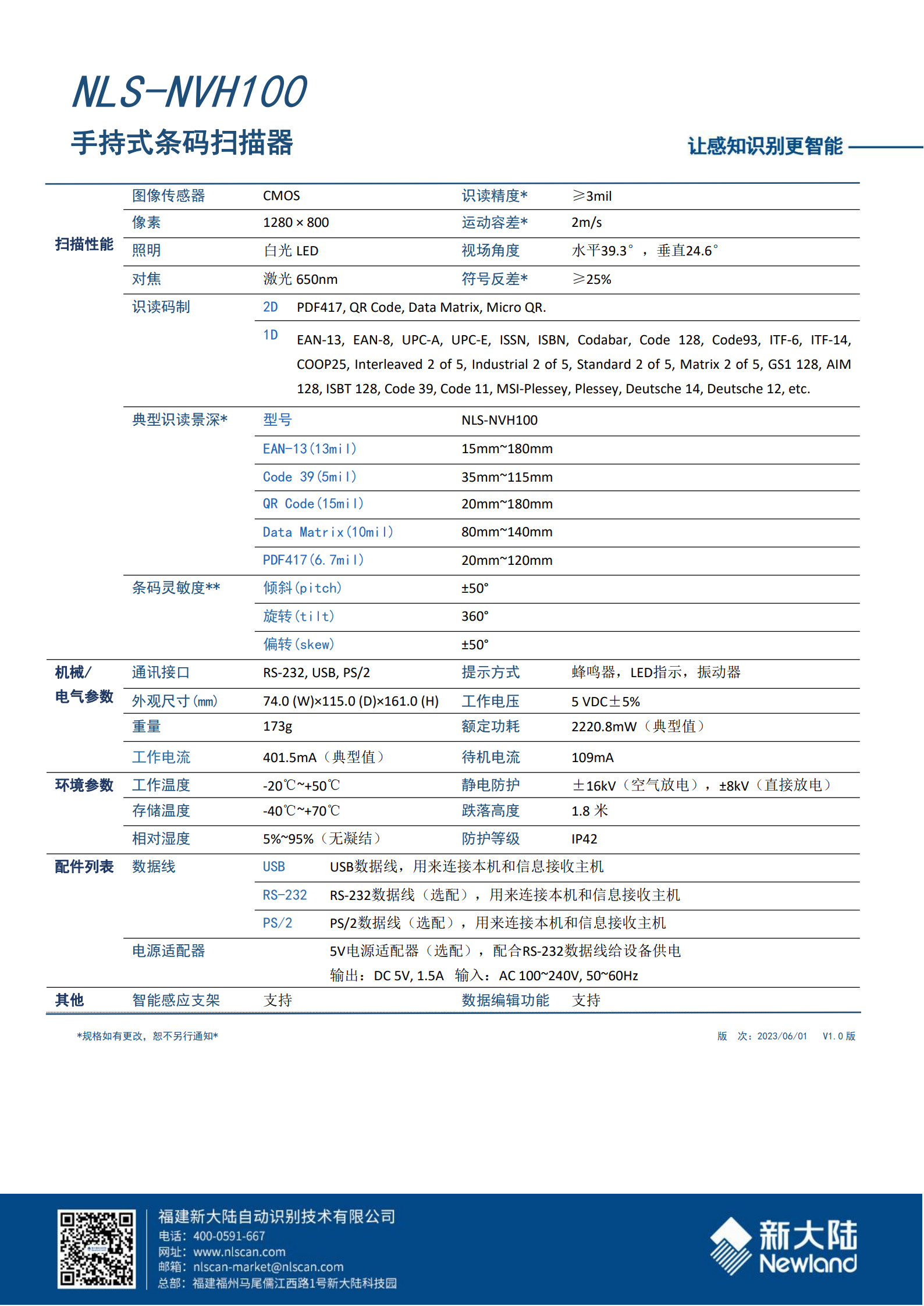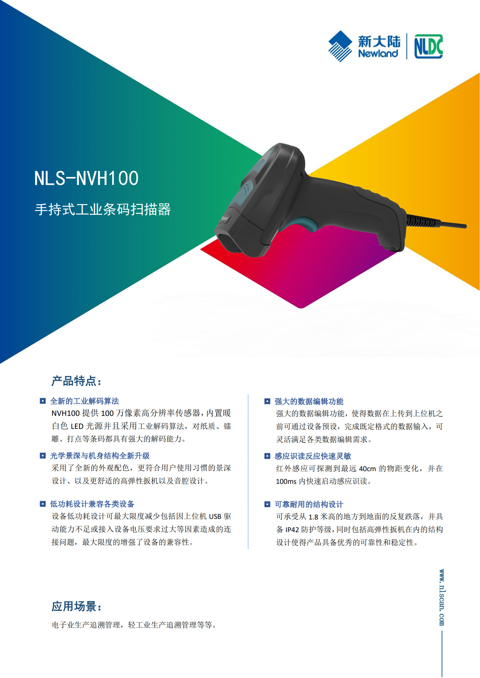 NLS-NVH100工业手持式条码扫描器,针对各种难解DPM码具有强大的解码能力,其创新的高弹性扳机及更贴合工业场景的音腔设计,保障其工业级别的可靠性与稳定性;突破的全新配色,光学景深与机身结构全面升级,在全面提升扫码性能的同时,大幅提升用户体验。