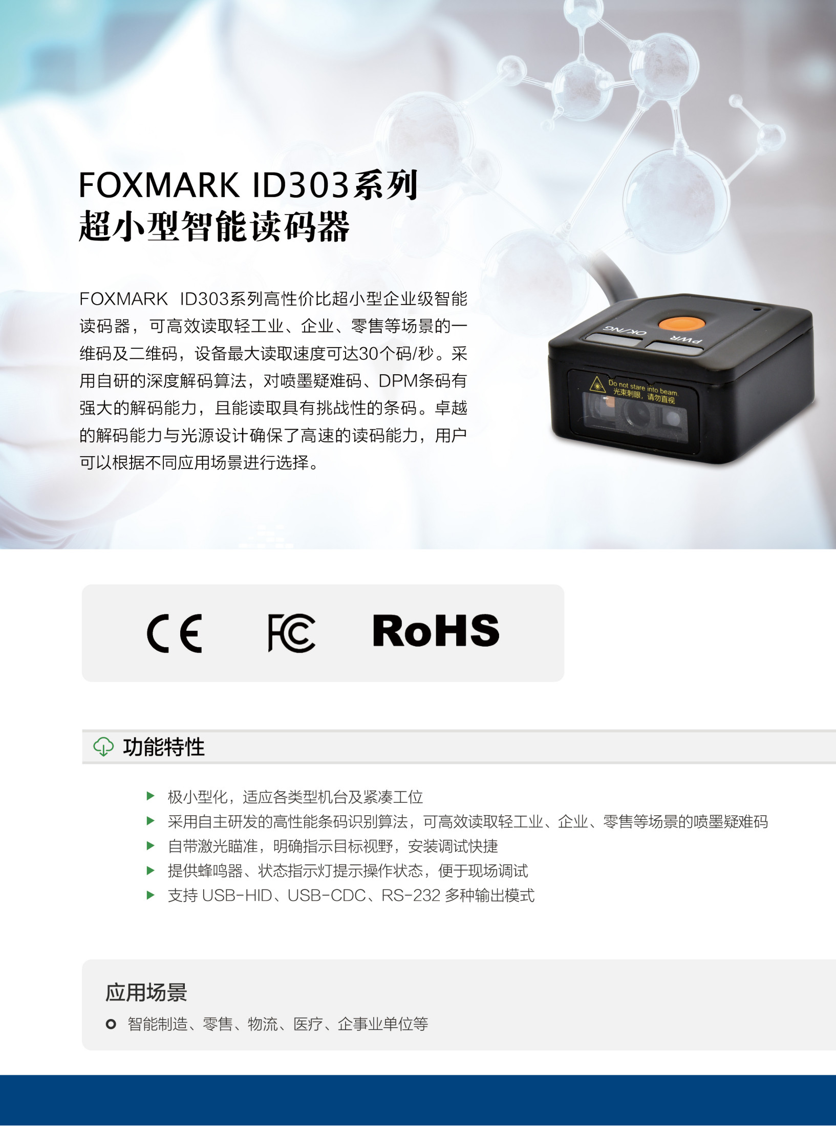 采用自主研发的高性能条码识别算法,可高效读取轻工业、企业、零售等场景的喷墨疑难码自带激光瞄准,明确指示目标视野,安装调试快捷