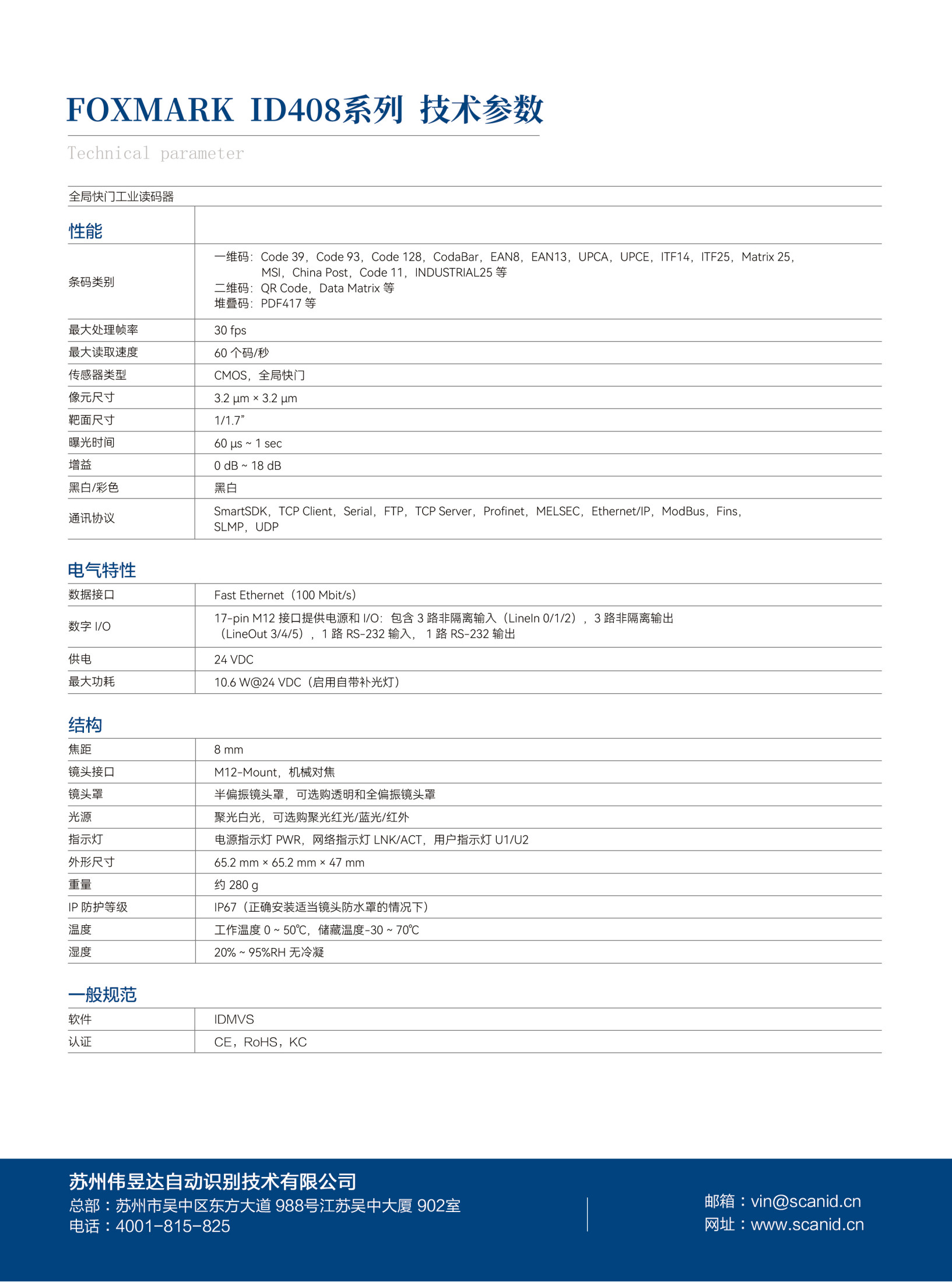工业读码器 FOXMARK ID408