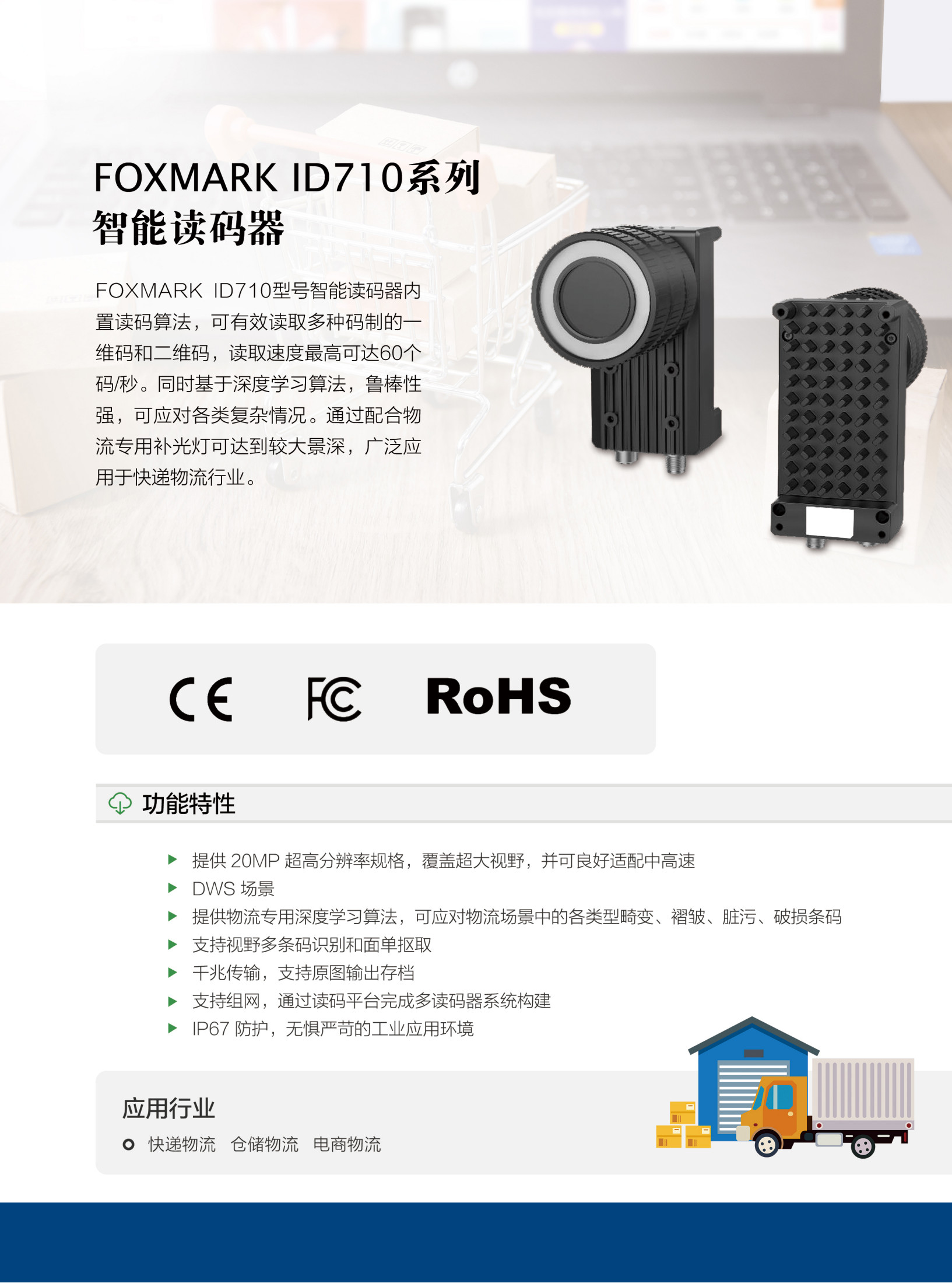 提供物流专用深度学习算法,可应对物流场景中的各类型畸变、褶皱、脏污、破损条码